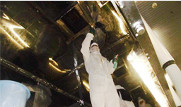 コンベヤー清掃作業、機器類業面清掃作業、集塵機分解清掃作業(付随するダクトの清掃も可能)、サイロ内壁清掃作業など